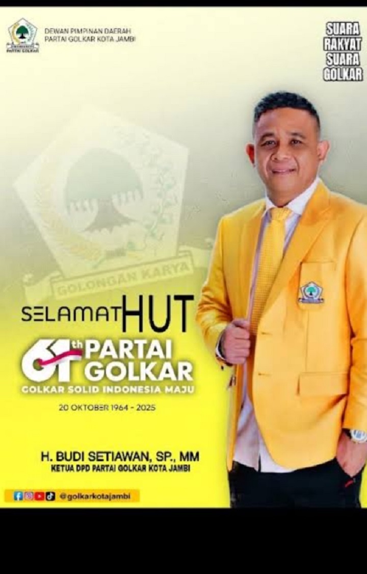 Jambi, Pilarmedianusantara.com 23 oktober 2025 – Ketua dpd kota jambi melakukan ulang tahun partai golkar yang ke 61 tahun, partai golkar kota jambi melakukan beberapa rangkai acara antara lain kunjugan ke beberapa panti asuhan dan anak yatim dalam rangka menompang perekonomian masyarakat kota jambi partai golkar kota jambi melakukan bazar murah dari angka 120 rb masyarakat cukup membayar 61 ribu sesuai dengan angka ulang tahun