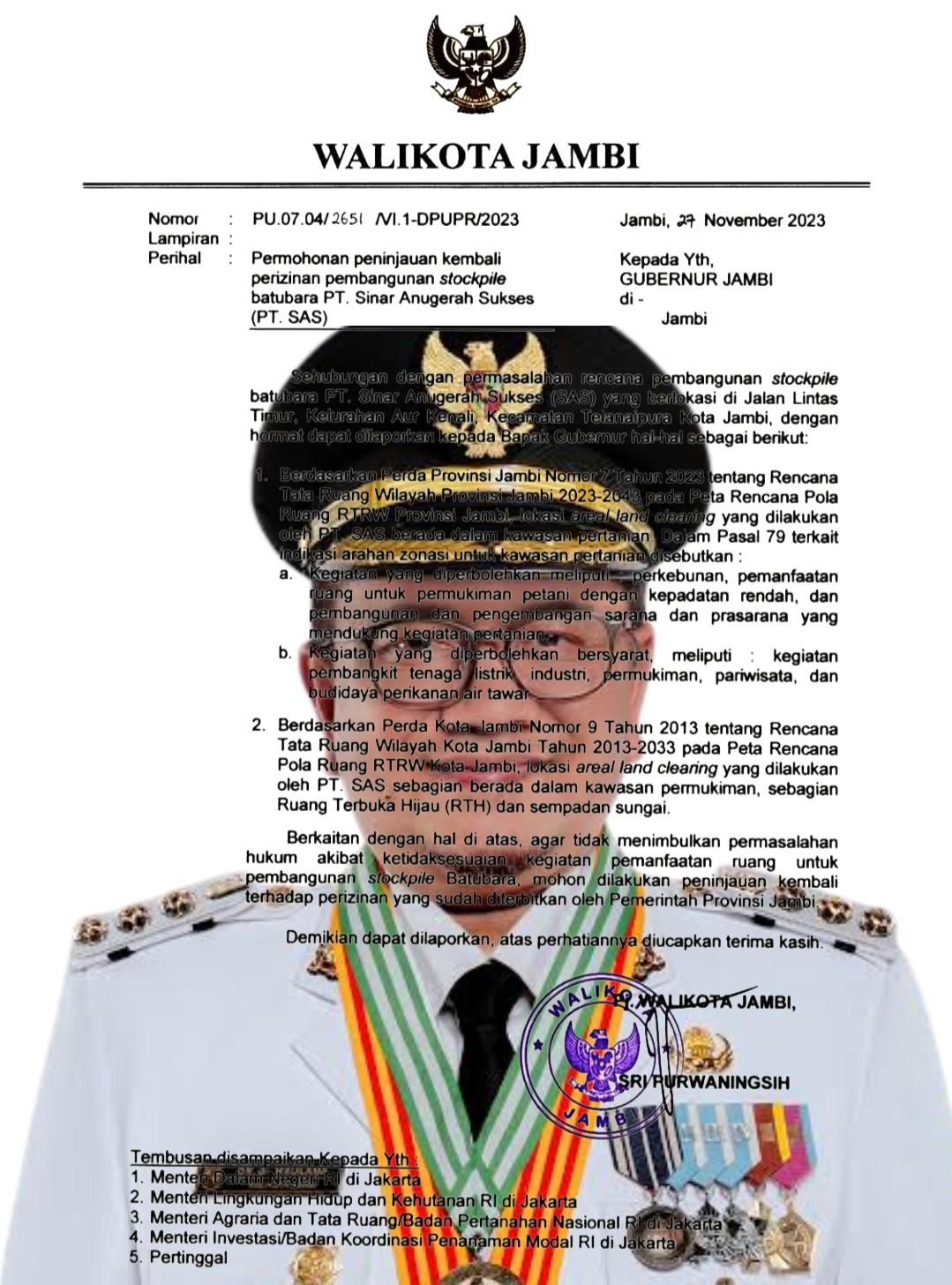 Surat resmi yang dikeluarkan PJ. Walikota saat itu, Sri Purwaningsih, meminta peninjauan kembali izin pembangunan stockpile PT. SAS. Artinya, masalah ini sudah diperhatikan sejak lama, bahkan sebelum terjadi aksi besar masyarakat. Namun, publik tidak pernah mengetahui tindak lanjutnya, meski surat tersebut ditembuskan ke berbagai kementerian, termasuk Kemendagri, KLHK, ATR/BPN, hingga BKPM. Diamnya tindak lanjut membuat legalitas izin PT. SAS semakin tidak jelas.