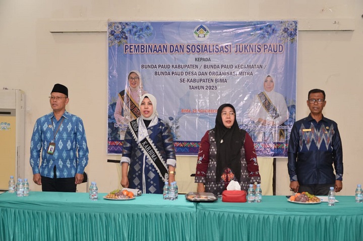 Bima, Pilarmedianusantara.com – Pembinaan dan Sosialisasi Petunjuk Teknis (Juknis) Pendidikan Anak Usia Dini (PAUD) yang digelar di Aula Masjid Agung Kabupaten Bima, Selasa (25/11/25) dihadiri oleh Bunda PAUD Kabupaten Bima Ny. Murni Suciyanti dan diikuti oleh Pokja PAUD Kabupaten, Bunda PAUD Kecamatan dan Bunda PAUD Desa se-Kabupaten Bima.